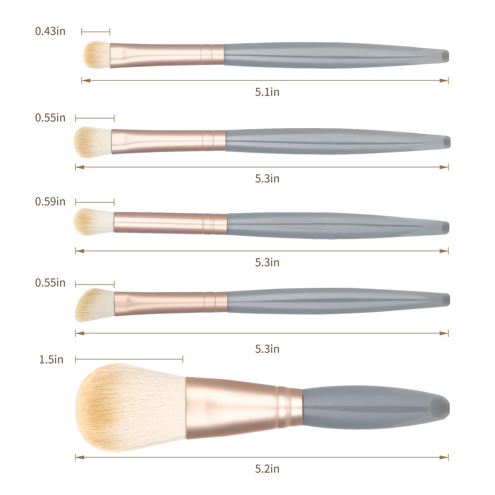 5 Pack Travel Makeup Brush Set, travel make up brushes sets mini eye shadow kits small size eyeshadow case eyes makup brushed makeuo soft brushs basic cosmetic profesional tools (Sky Blue)