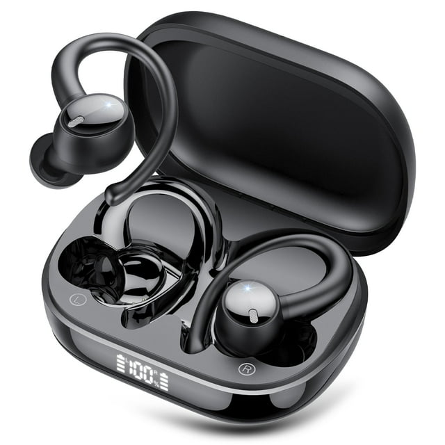 Bluetooth Headphones 5.4, 60Hrs Playtime Wireless Earbuds, Bass Boost 85%, Over-Ear Headphones Built-in 4 ENC Mics, IPX7 Waterproof Ear Buds with Earhook for Exercise Running Sports Black