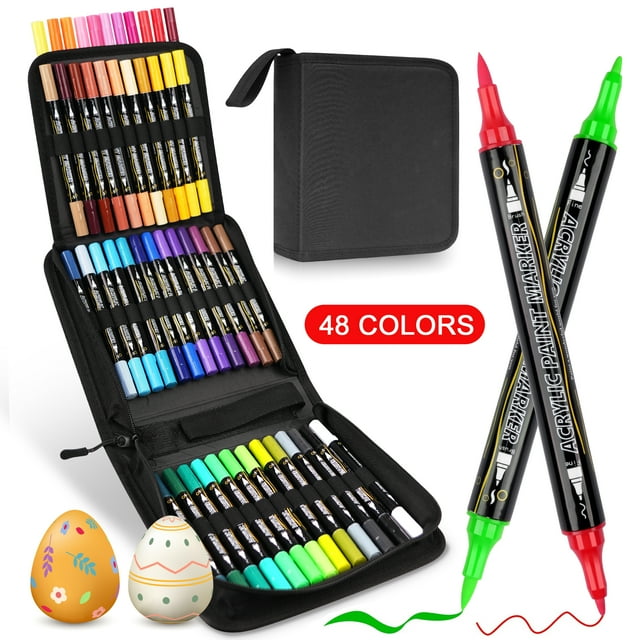 - 48 Vibrant Colors: With 48 unique and vibrant colors to choose from, this complete set of double-ended acrylic markers is colorful enough to meet all your creative needs. The ink provides excellent coverage and durability, allowing your creations to stand the test of time. WARM TIP: Please close the cap after use to keep the marker smoother.