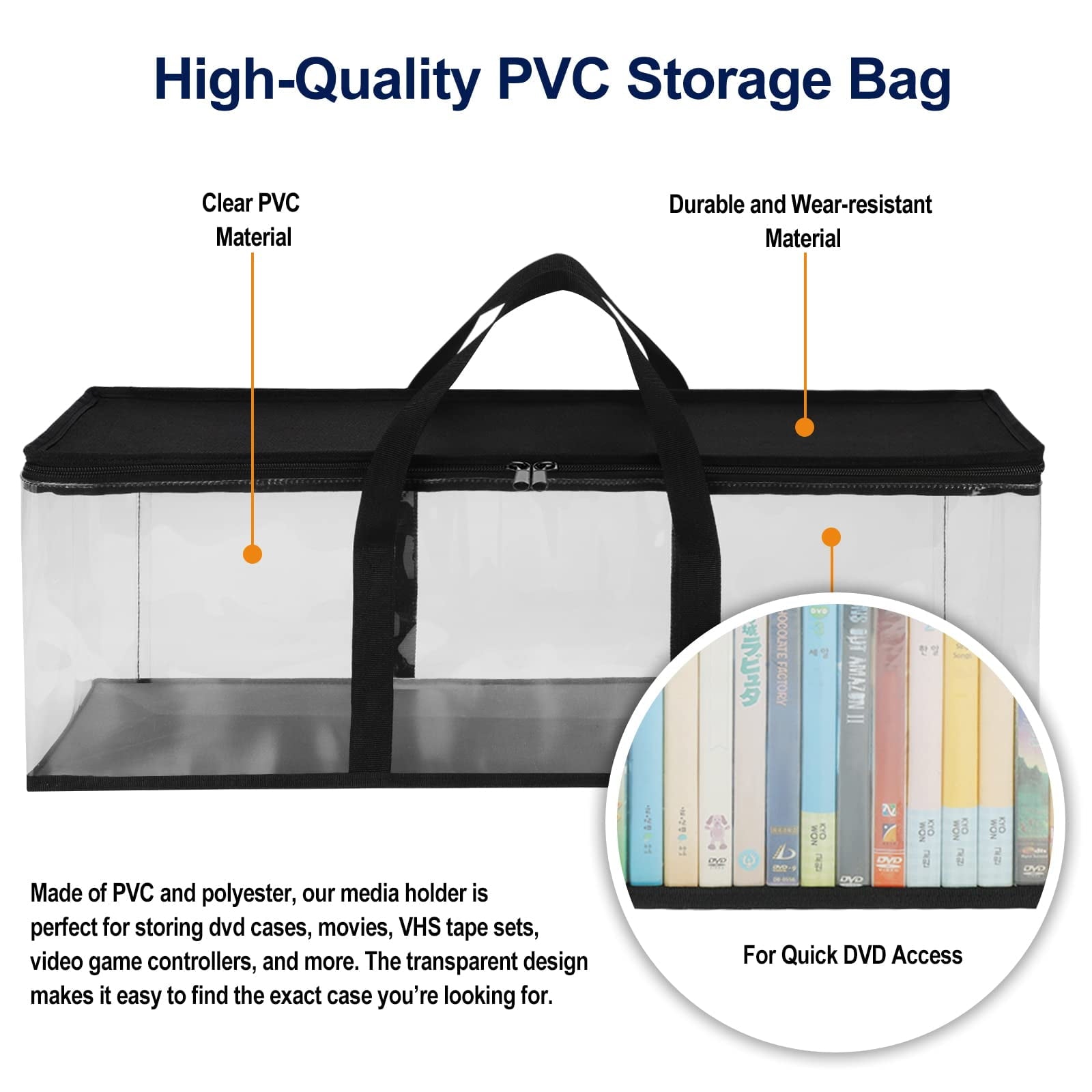 DVD Storage Bags (Set of 2) Clear PVC Media Holder Case with Handles for DVDs/CDs/VHS Box/Blu Ray Disc/Movie Cases/Video Games Discs - Each Bag Holds up to 40 DVDs