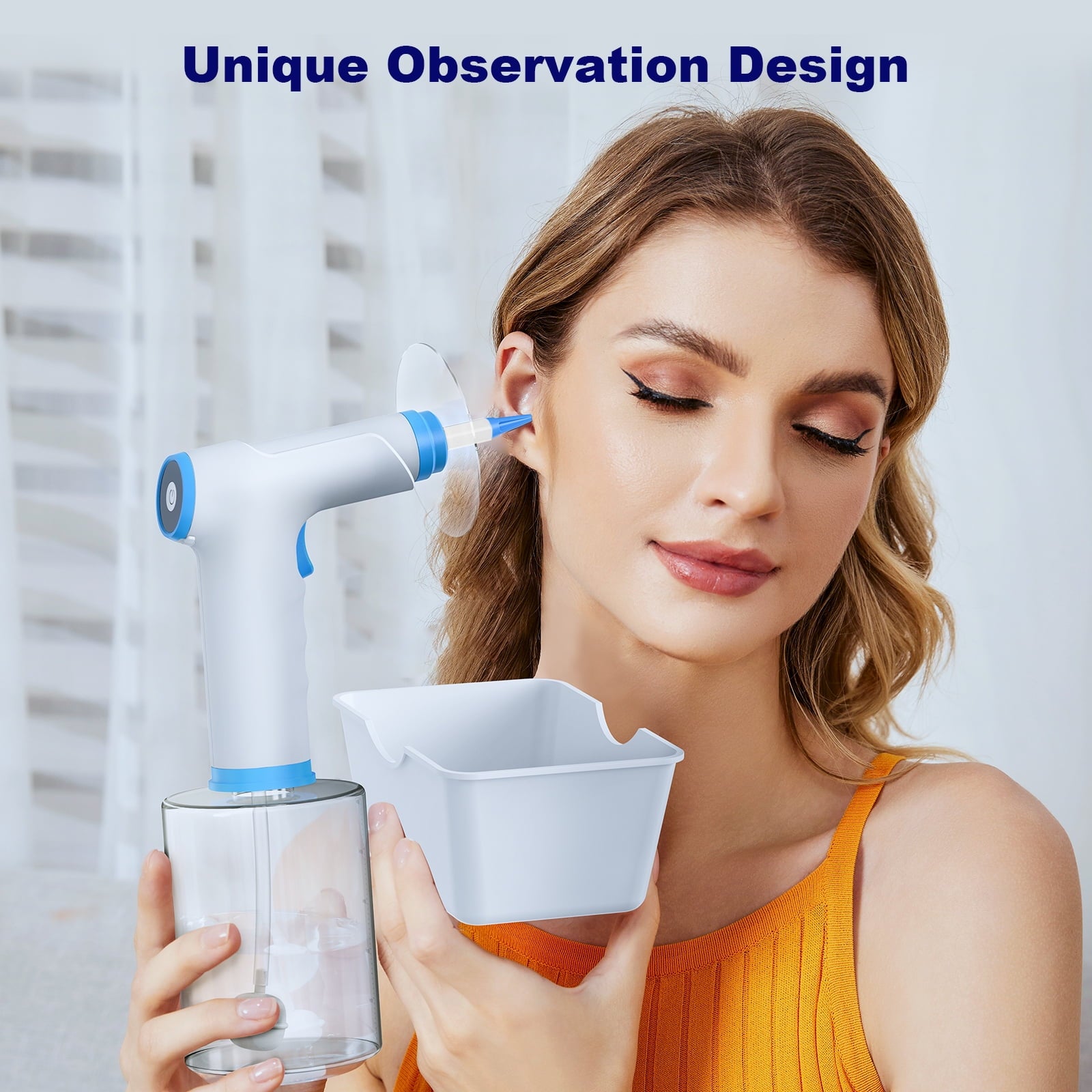 - 【Ear Cleaner for All Ages】:Our ear wax removal tool is a device that quickly and effectively removes excess ear wax. It can remove ear wax at home, an ear canal flushing kit suitable for people of all ages. Note: Children need to be accompanied by their parents to use it.