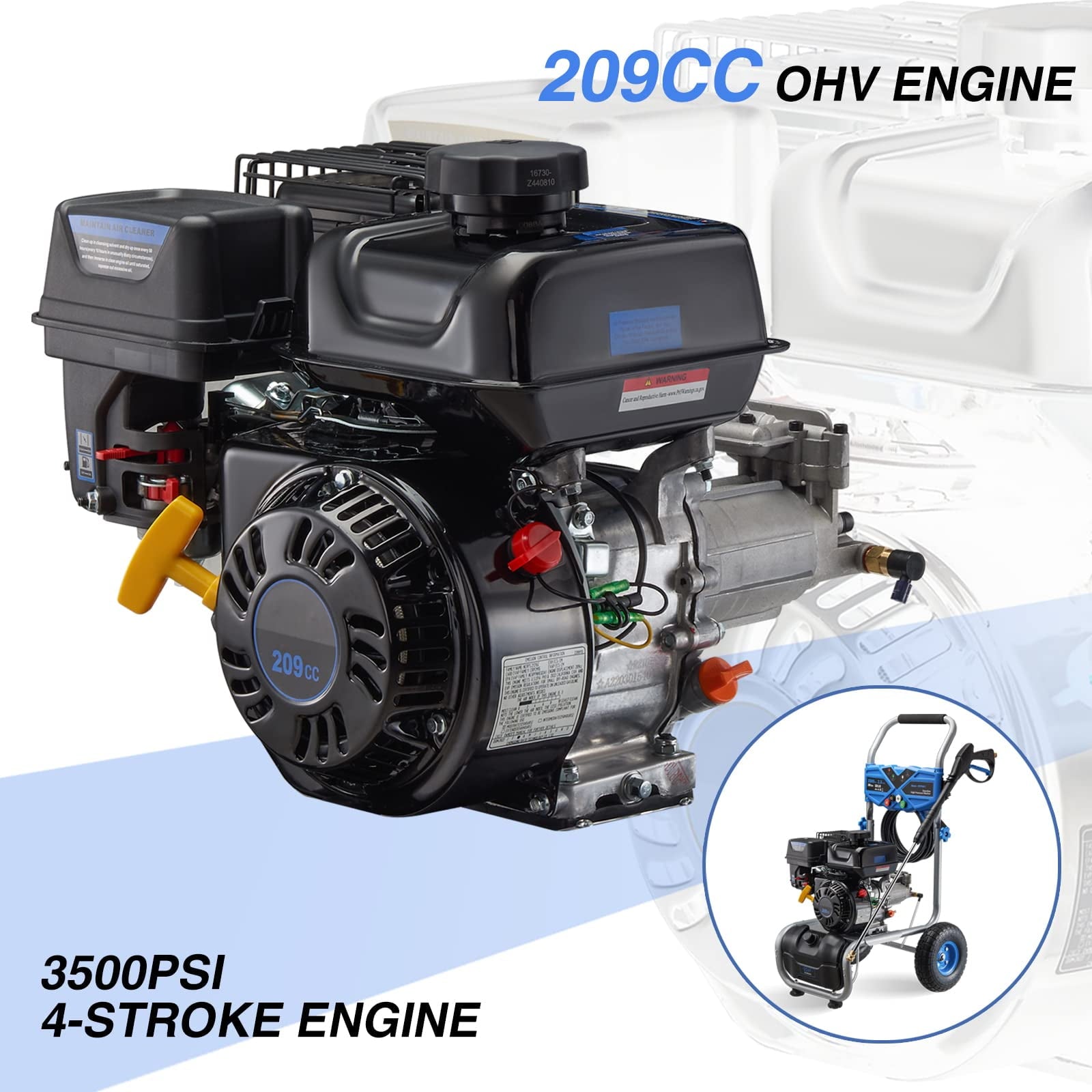 - Professional Engine: Equipped with a 209cc 4-stroke OHV Horizontal Shaft Engine, ensuring durability and ease of use with a maintenance-free axial lobe pump.