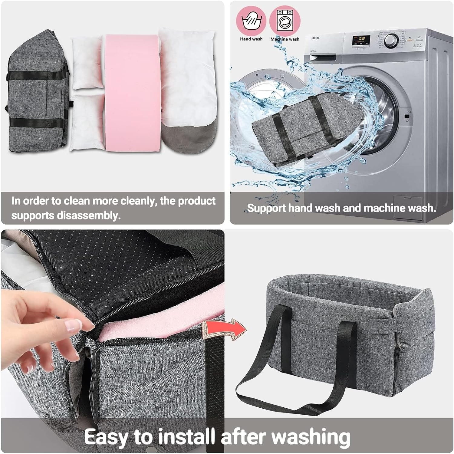 - 🚩EASY TO INSTALL & CLEAN: The elastic bottom strap allows the dog car seat cover to be securely fixed on the center console, preventing it from sliding during the car ride. The dog car seat cover features an internal sliding zipper, with the filling placed in a separate bag for easy removal and cleaning.