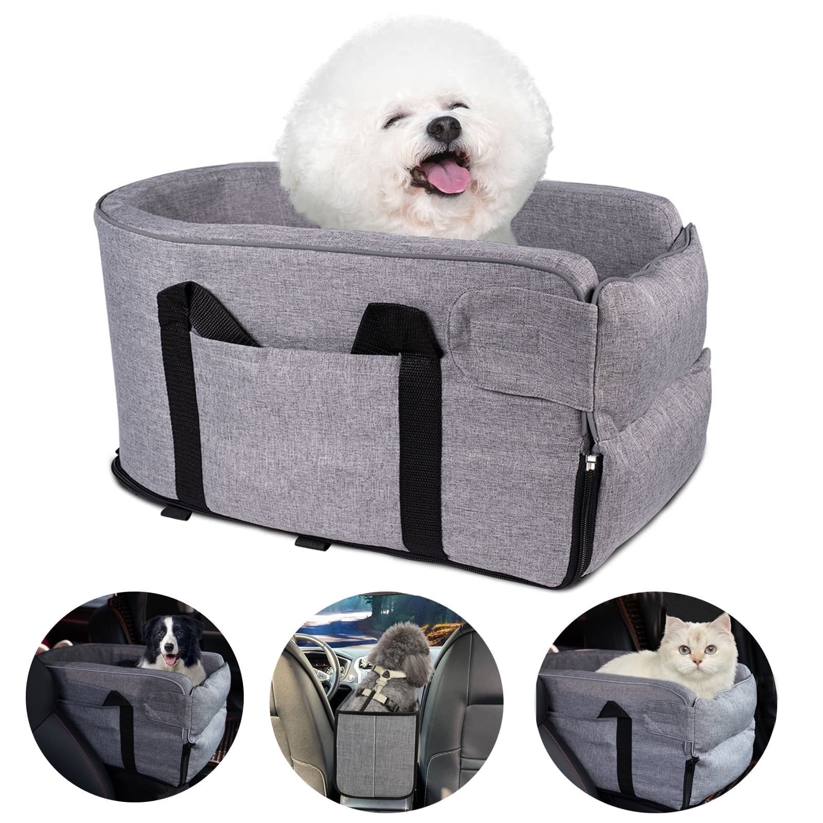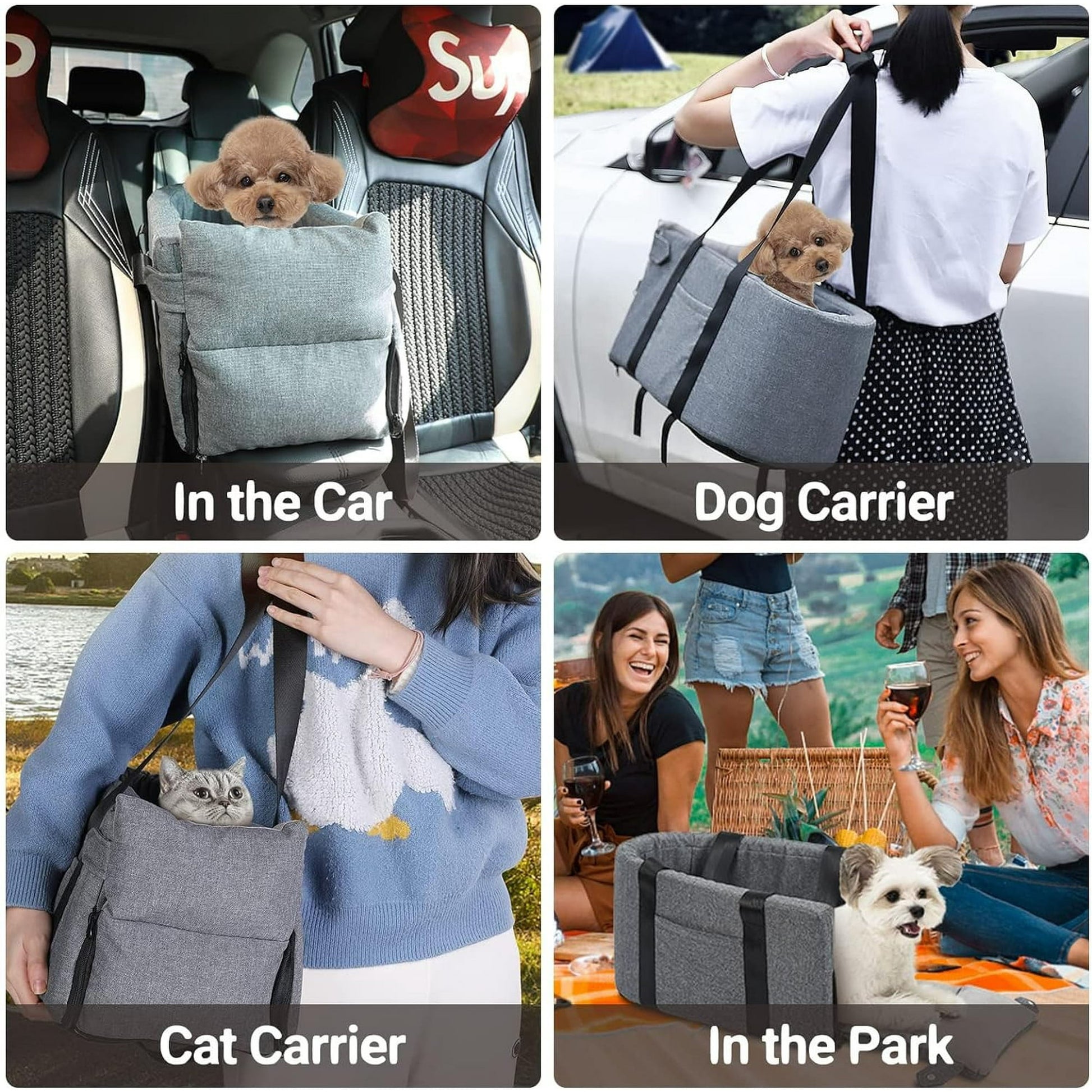 FETERVIC Dog Car Seat--Concentrate On Driving Dog Car Seat, Designed for small and medium dogs and cats, the dog car seat booster design with two safety belts fix the booster seat to prevent it from sliding into the car, making pet not disturb you when you are driving, it will ensure the safety of you and your pet. Your pet will even get an unobstructed view out the window, with no anxiety, restlessness, or barking in the car. This dog car seat is made of high-quality Oxford cloth that is bite-resistant, durable, and easy to clean. Filled with plenty of elastic sponges, it can keep pets warm and comfortable outside, Perfect for traveling with your dog or cat.