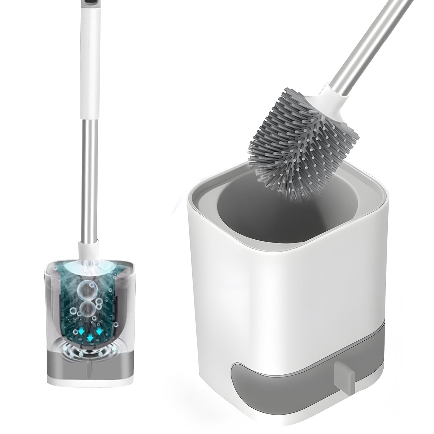 Fuvuan Toilet Bowl Brush and Caddy Holder Set, Silicone Toilet Scrubber Cleaner for Bathroom 1 Pack