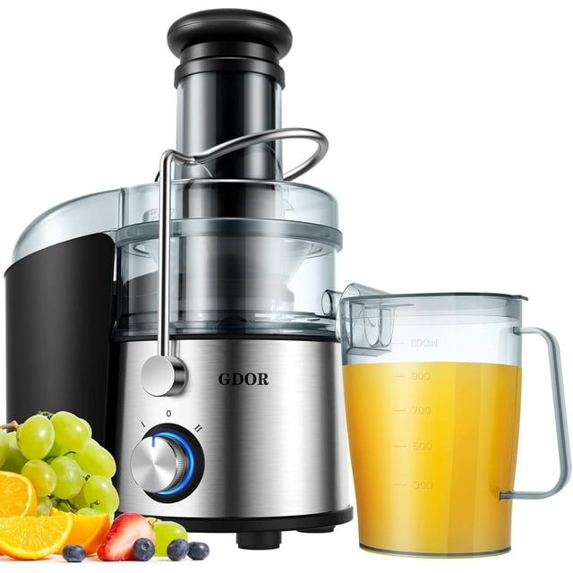 - What's the fastest way to get a cup of fresh juice? - Just prepare your favorite fruits, vegetables and a GDOR juicer. The GDOR Juicer with larger feed chute fits whole fruits and vegetables, saves prepare time. 1200W strong motor and enhanced titanium blades process even the toughest foods in just seconds. Besides, the large 40 Oz juice pitcher ensures enjoyment of the whole family!