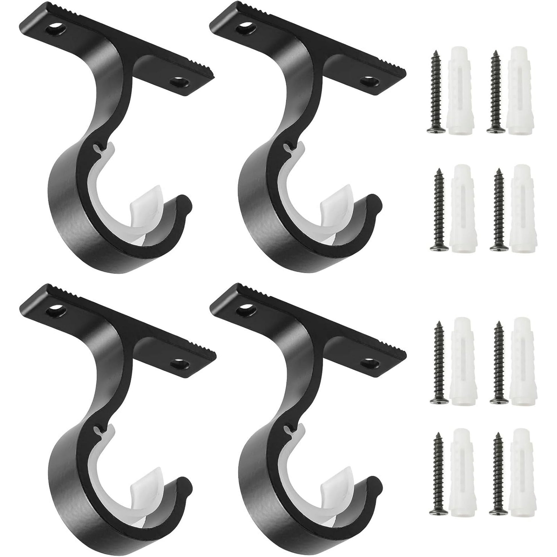 Genreen Curtain Rod Brackets Ceiling Mount and Wall Installation Curtain Rod Brackets Ceiling Curtain Rod Brackets Rod Holders for 1 Inch Rod, Black Color, (Set of 4,Black)