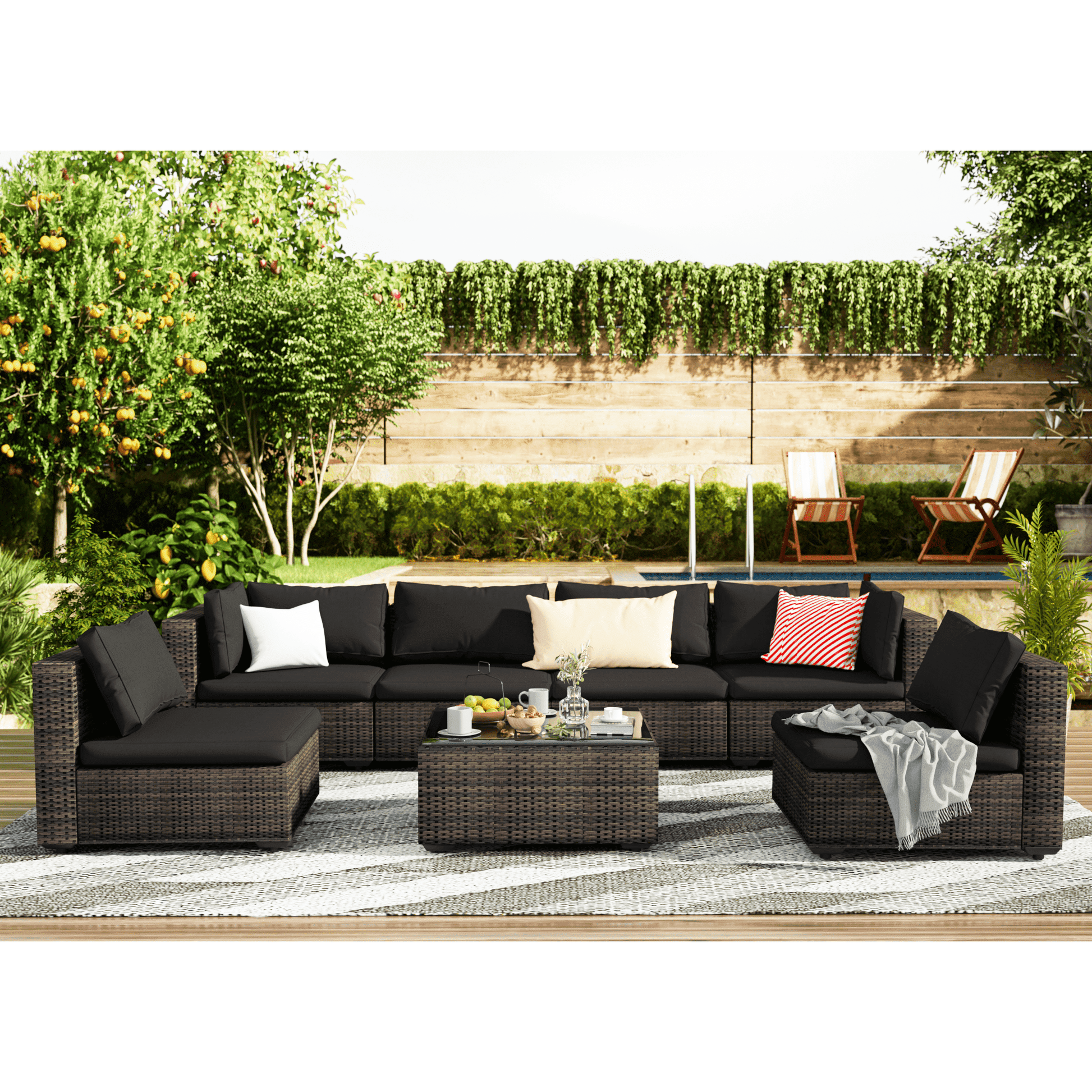 Grezone 7 Patio Outdoor Furniture Wicker Sectional Sofa Couch Lawn Sectional, Black