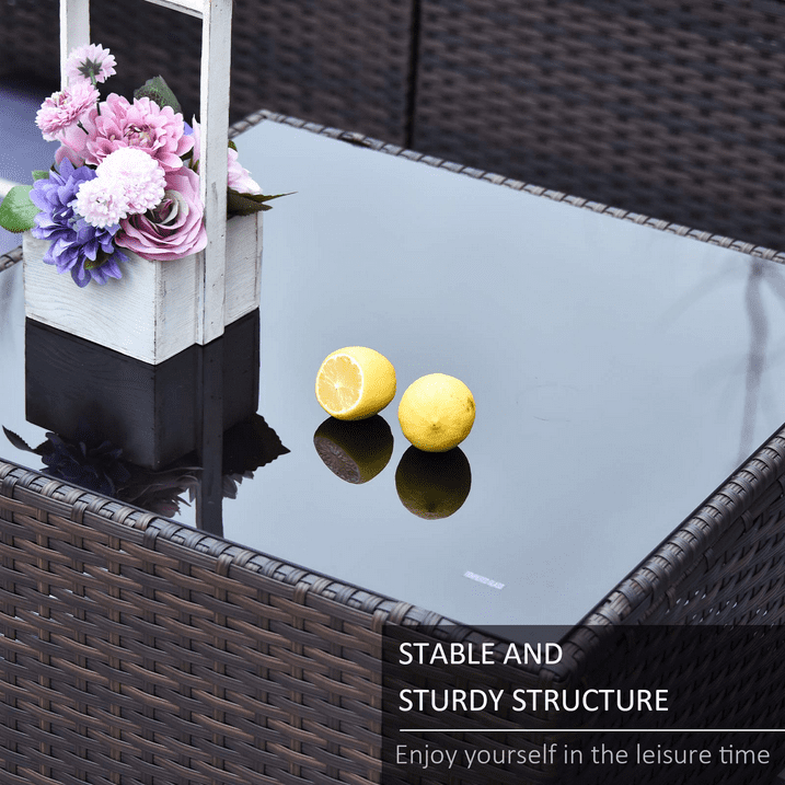Sturdy Material: made of high-quality PE rattan, it is durable, water resistant to outdoor weather conditions. And the strong metal frame of the outdoor furniture set keeps the stability and balance. It's built to last for a long time