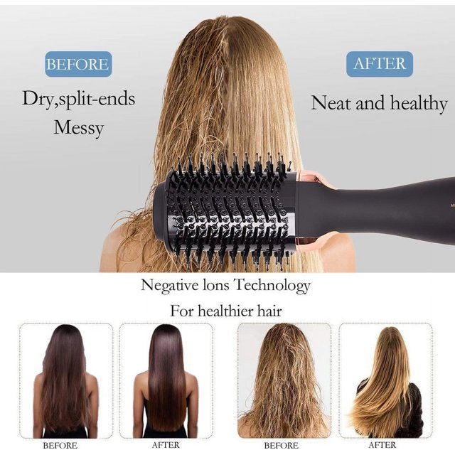 - No other hair tools needed, Our blowout brush can be used as a hair dryer, hair straightener, curler, massager comb and Styler Volumizer. It will help you complete the exquisite and gorgeous salon blowout result.Suitable for all hair types, such as long or short hair, curls. The ergonomic handle is designed for maximum comfort and ease of use during styling.