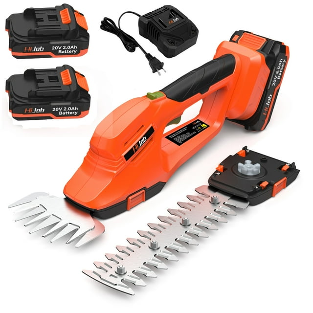 HIJOB Cordless Hedge Trimmer for Gardening, 2-in-1 Grass Shears Cutter with 2 PCs Battery for Lawn, Yard, Bushes, Shrubs, Branches, Weed