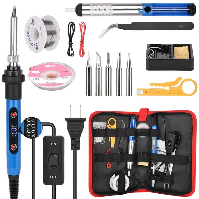 Hiteenyian 15 PCS Electric Soldering Iron Kit, 80W Adjustable Temperature Digital Display Repair Soldering Tool, Portable Electronic Circuit Board Precision Welding Small Tool Kit with ON-Off Switch