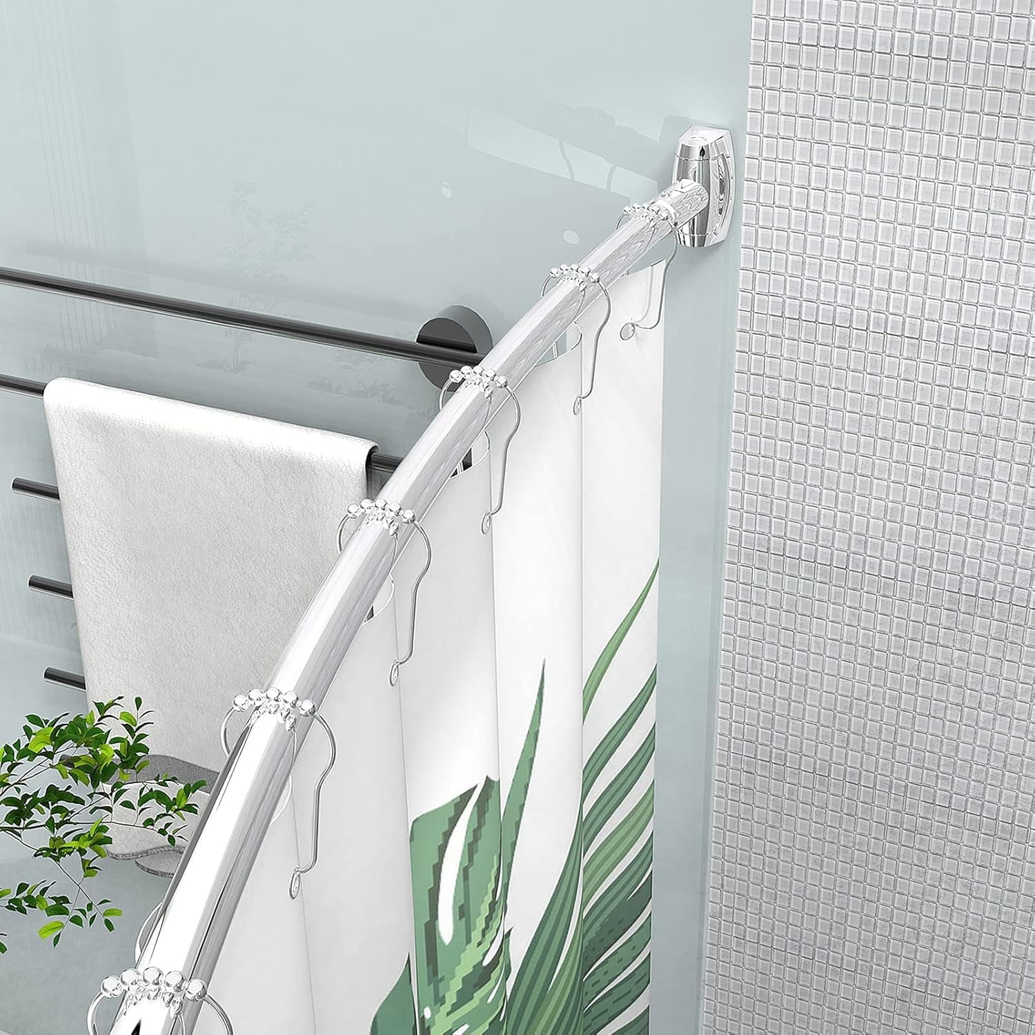 - 【Extra Shower Space】 Compared with traditional straight curtain rods, the curved design provide an extra 10.5 inches of shower space! Shower curtain rod curves around your tub, you won't touch the damp shower curtain when you raise your elbows, making your bathing experience more enjoyable.
