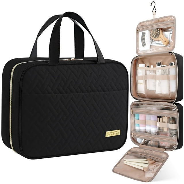 - Equipped with high-quality metal hook, the travel bag saves space by hanging on towel racks. Telescoping hook allows for neat storage of toiletries and cosmetics.