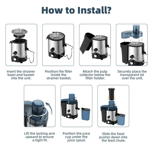 - Safety Locking Arm: Juice presser will not work without cover locked into place.