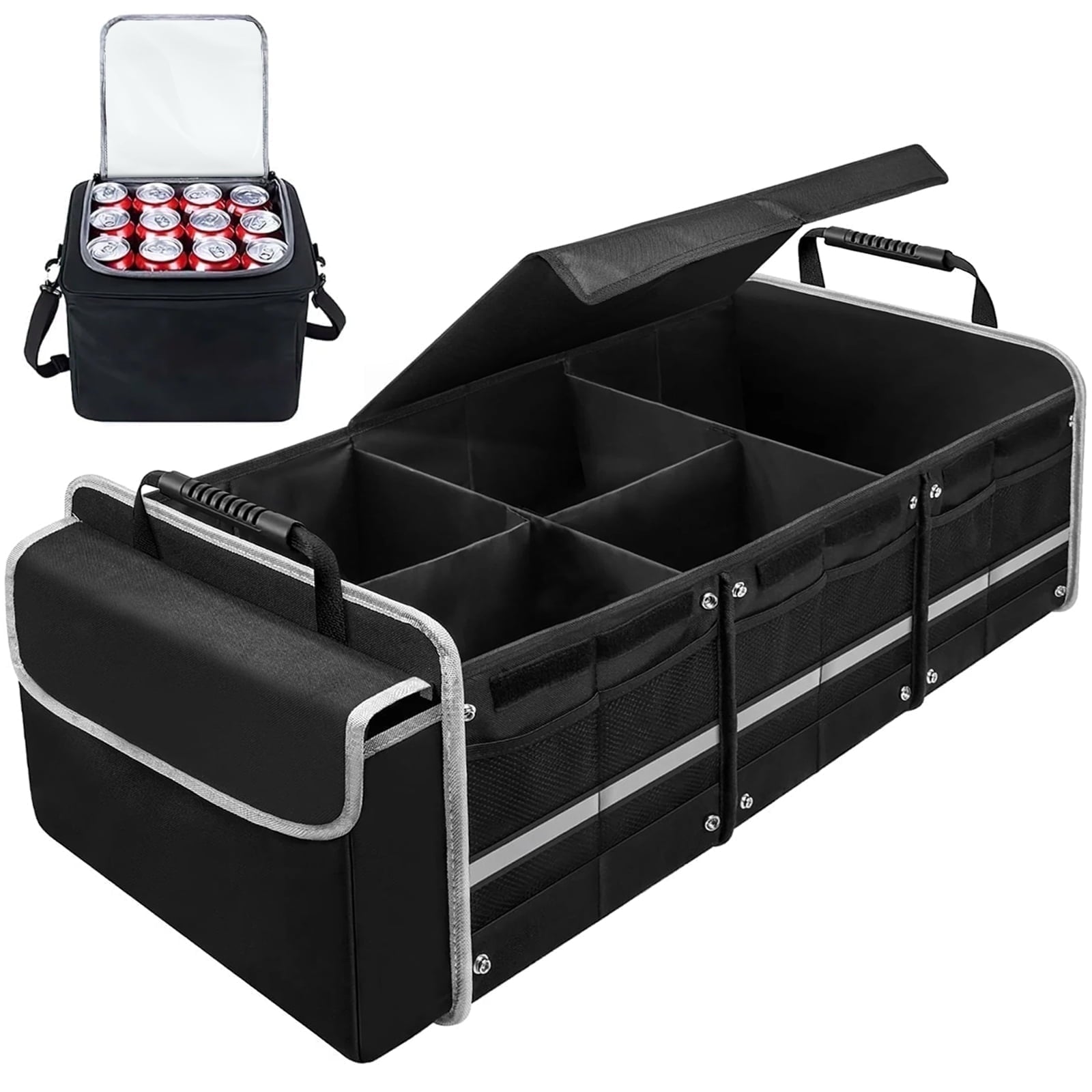 Kailwokk Trunk Organizer for SUV, Collapsible Multi Compartment Car Organizer with Leakproof Insulated Bag for Car Accessories for Women Men