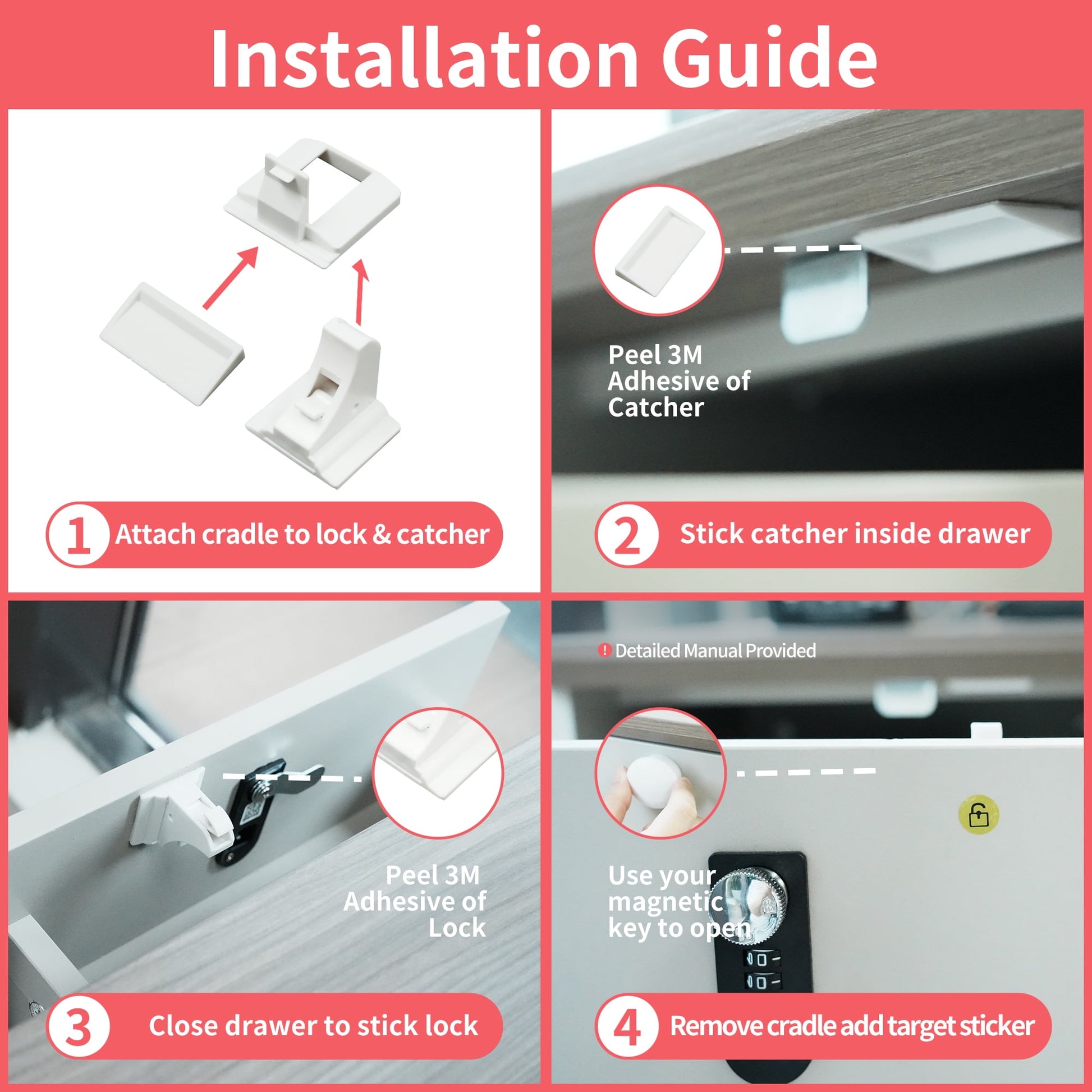 - Unbeatable Security - Our magnetic cabinet locks for babies use strong 3M adhesive tape that can withstand even the most determined munchkins, keeping your little babies safe and your cabinets secure.
