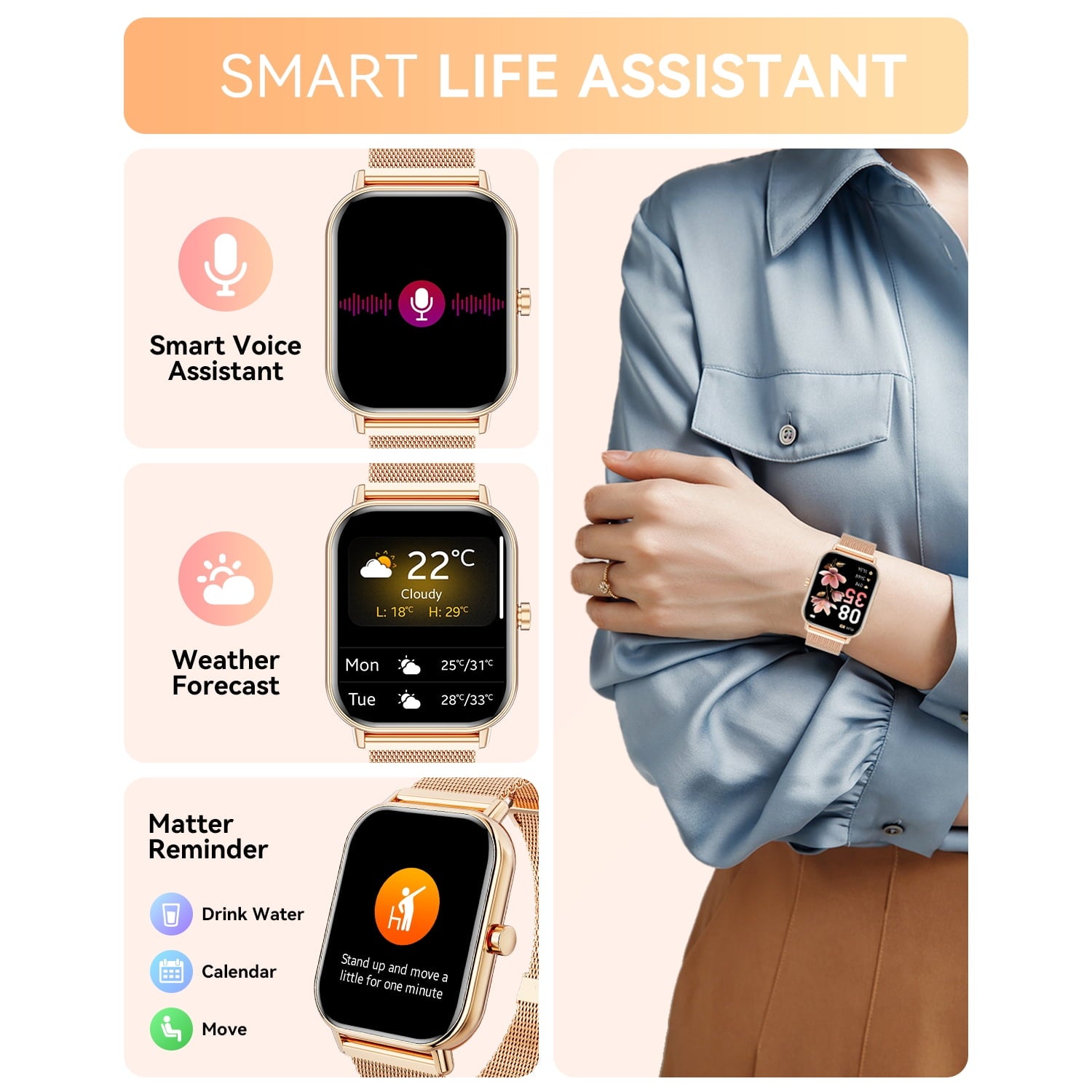 Mingwear 1.85-inch Women's Smartwatch, Fitness Tracker for Android and Iphone, IP68 Water Resistant, 100 Sport Modes with Answer/Dial/Message Alerts (Milanese Steel Band)