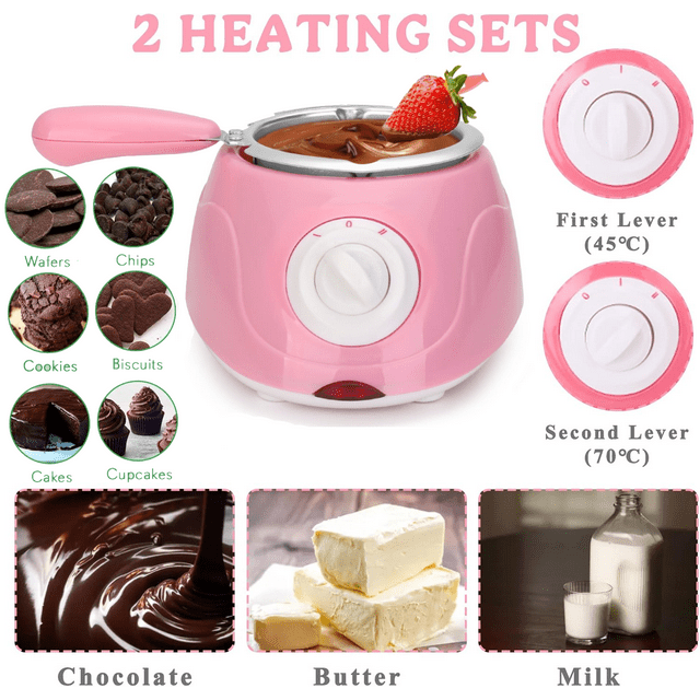 - Fast Heating And Compact Portability:Melting chocolate pot has 2 levels of temperature control are more precise,just twist the temperature knob to the desired heating intensity.It's smaller than a regular hot pot,but for melting chocolate,it's a perfect size.