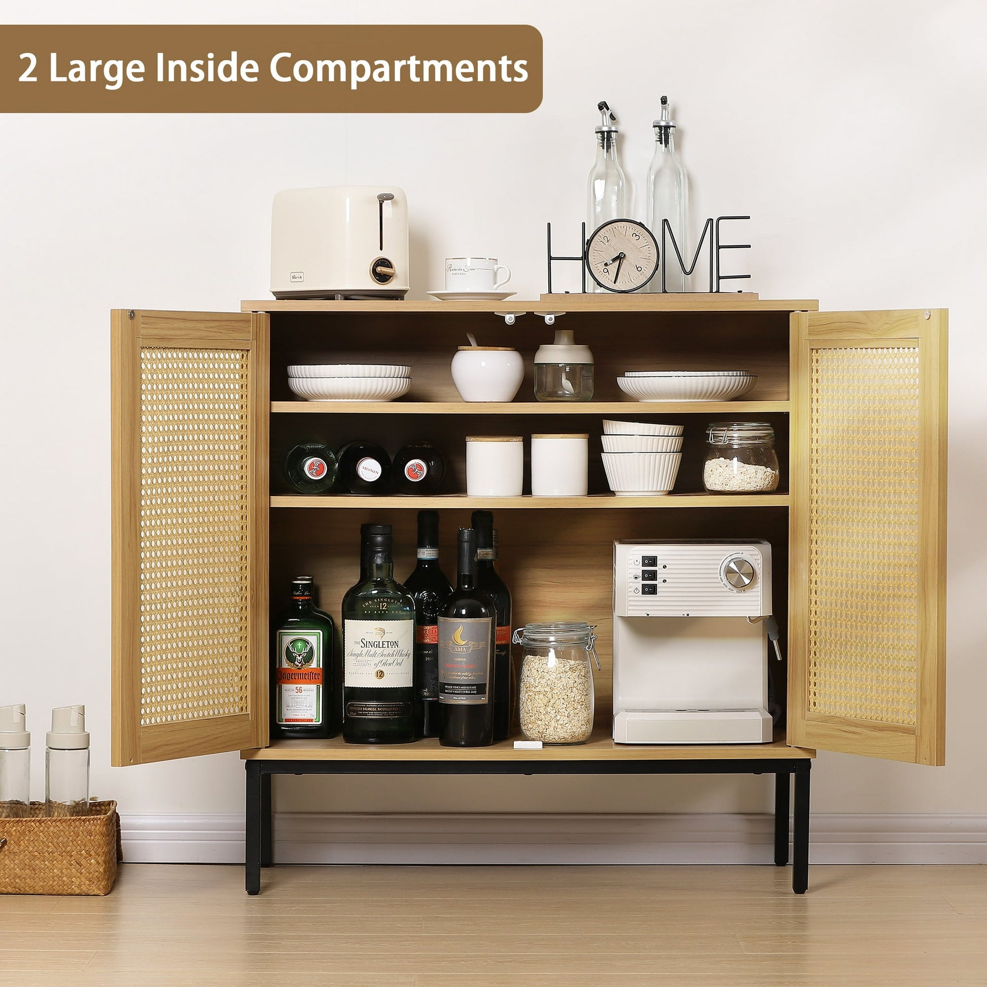 Elevate your home decor with the Rattan Sideboard Buffet Cabinet with 2 doors, a seamless blend of modern and farmhouse aesthetics. The built-in height-adjustable shelf offers versatile storage options, making organization effortless. Designed to enhance any space, it functions perfectly as a living room credenza, dining room console table, kitchen cupboards, or entryway storage cabinet.