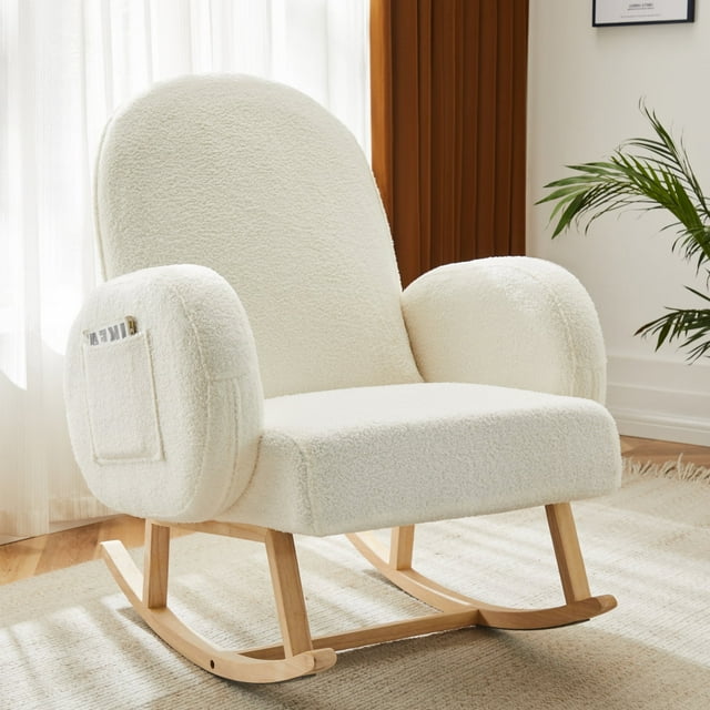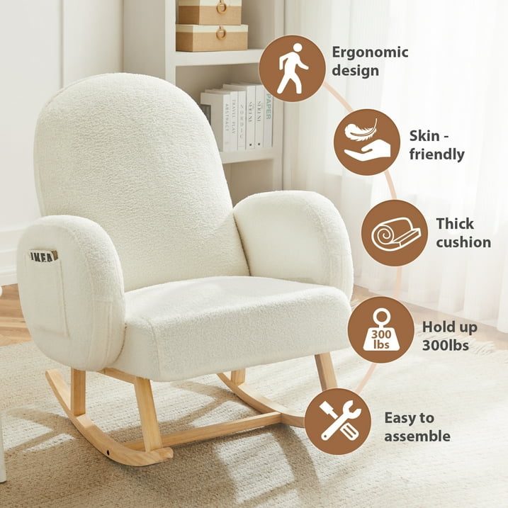 Nifamembo Teddy Nursery Rocking Chair with Solid Wood Legs, Side Pockets for Living Room