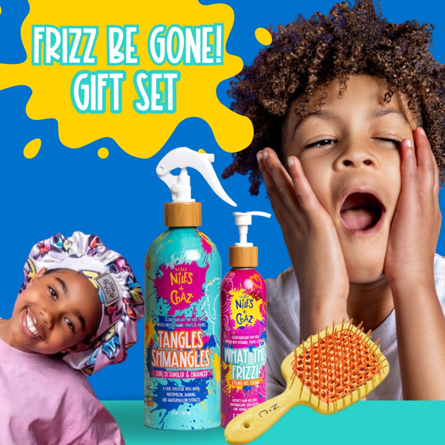 Niles and Chaz Frizz Be Gone Gift Set - Curl Detangler & Enhancer, Gel Cream, & Detangling Brush