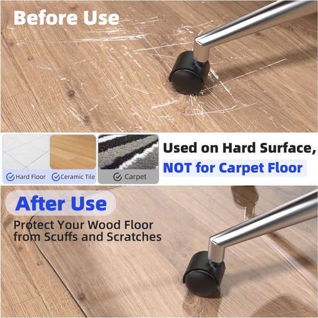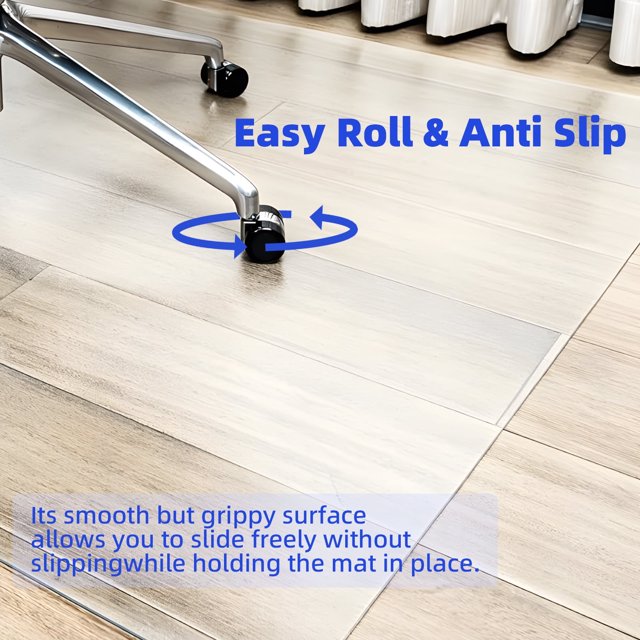 Our office floor mat thickness is 1.7mm/ 0.07 inches, better protect your hardwood floor from the wear and tear caused by office chair casters- Suit for hardwood, laminate,vinyl, tile.