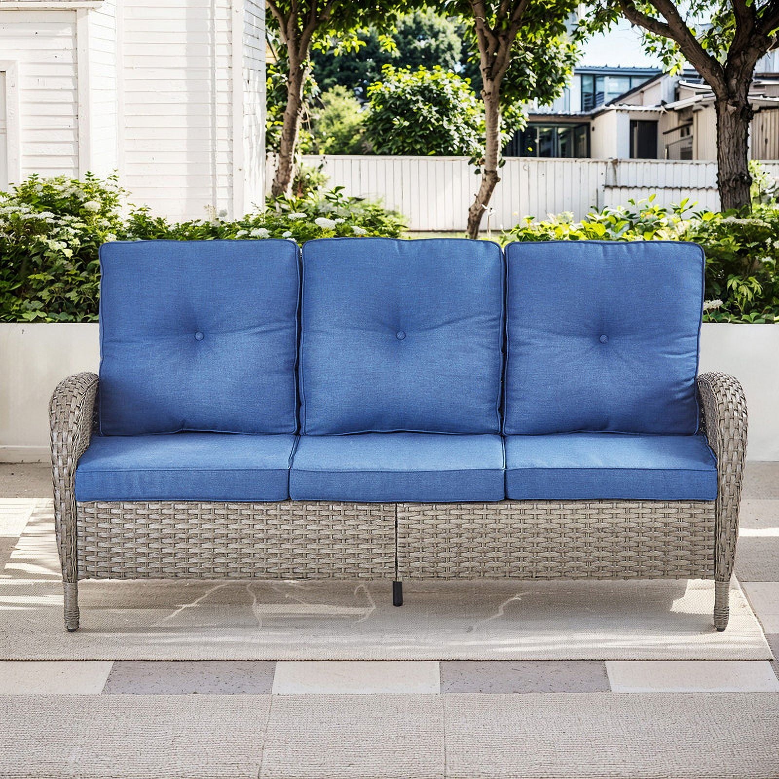 PARKWELL 5-Piece Outdoor Patio Conversation Set,Wicker 5-Seat High Back Furniture with Sofa, Swivel Gliders and Coffee Table,Gray Wicker Navy Cushions