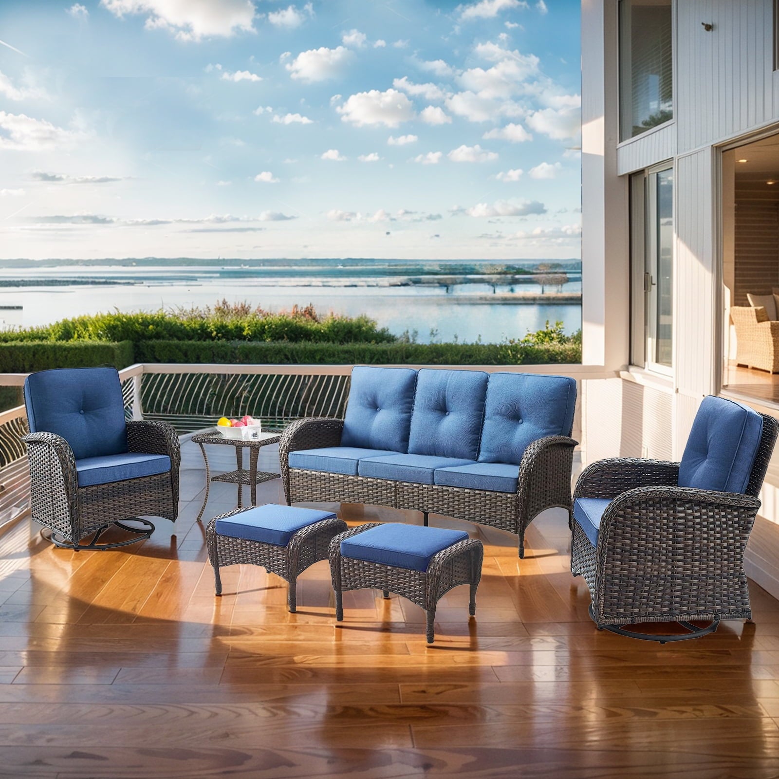 PARKWELL 6-Piece Outdoor Furniture Sets,All-Weather Wicker Patio Sectional Sofa Couch Conversation Sets with Cushions for Balcony,Navy