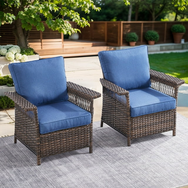 PARKWELL Outdoor Wicker Cushioned Lounge Chair Set of 2, Outdoor Seating Set for Backyard, Poolside, Balcony, Indoor Use w/Seagull-Shaped Armrests,Navy