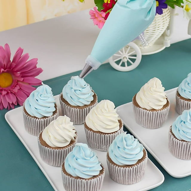 - This set includes 100 disposable 12-inch pastry bags, 12 unique frosting tips, 1 reusable piping bag, 1 coupler, 2 bag ties, and 3 cake scrapers – everything you need to create beautiful cakes, cupcakes, and cookies!