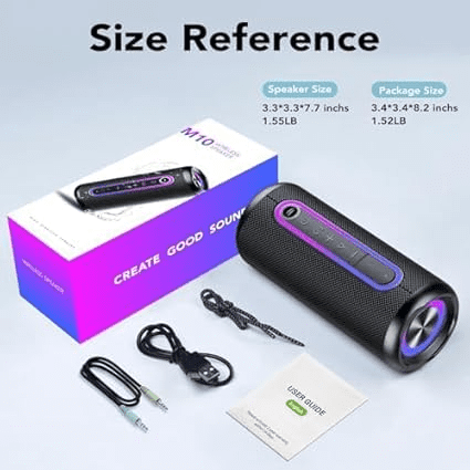 - 30 Hours Battery Life and Type-C Fast Charge: The 4000mAh battery of the wireless speaker uses the energy storage technology of electric cars, charging for 2 hours can provide you 30 hours. In addition, you can also turn off the multicolor lights and the click to extend the life of the bluetooth speaker.