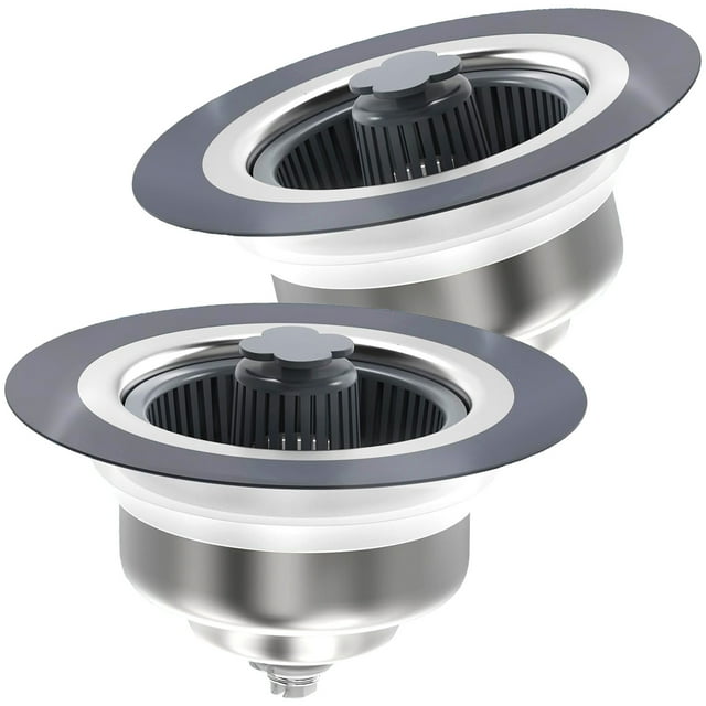propuri 3in1 Kitchen Sink Drain Strainer and Sink Stopper, Stainless Steel Kitchen Drain Plug & Cover with Anti-Clogging Basket Strainer, Fit US Standard 3-1/2'' Drain Hole,2 Pack .Upgraded 3-in-1 kitchen sink drain filter – efficient anti-clogging, worry-free cleaning The sink drain filter, kitchen sink plug and odor isolation functions are combined into one to easily solve the kitchen cleaning problem. Use our upgraded sink drain filter to easily stop food residues from clogging the sewer and make kitchen cleaning easier.