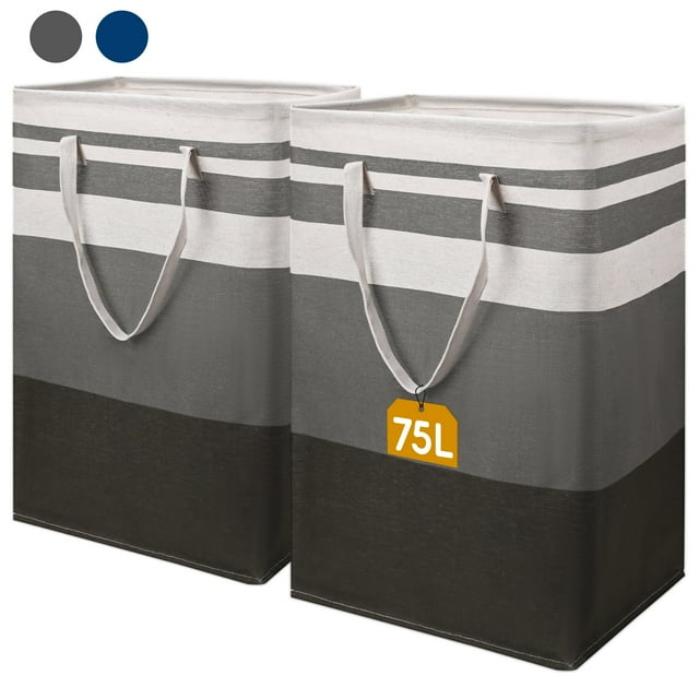 Qissep 2 Pcs 75L Waterproof Foldable Laundry Basket with Extended Handles,for Clothes and Toy Storage,Gradient Gray