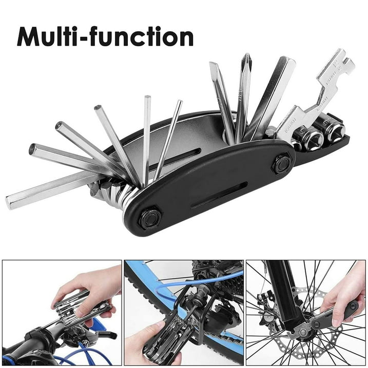 Rongsi Bike Repair Tool Kit Set, Bicycle 16 in 1 Multitool Hex Key Wrench & Bike Tube Patch Kit & Tire Lever, Portable Handy Cycling Maintenance Fix Set for Road Mountain Bikes Why Choose Rongsi repair tool kit?A Great Helper During Riding You would never want to experience waiting for help with a broken bike in the middle of no where. With Rongsi multi-function repair tool kit, save yourself and no worry about hidden troublesAll kinds of repair tool too messy? A hard compact case is convenient and stylish for the multifuction tool set, tire repair patches and pry bars, and other small ride essentials such as money and credit cards.