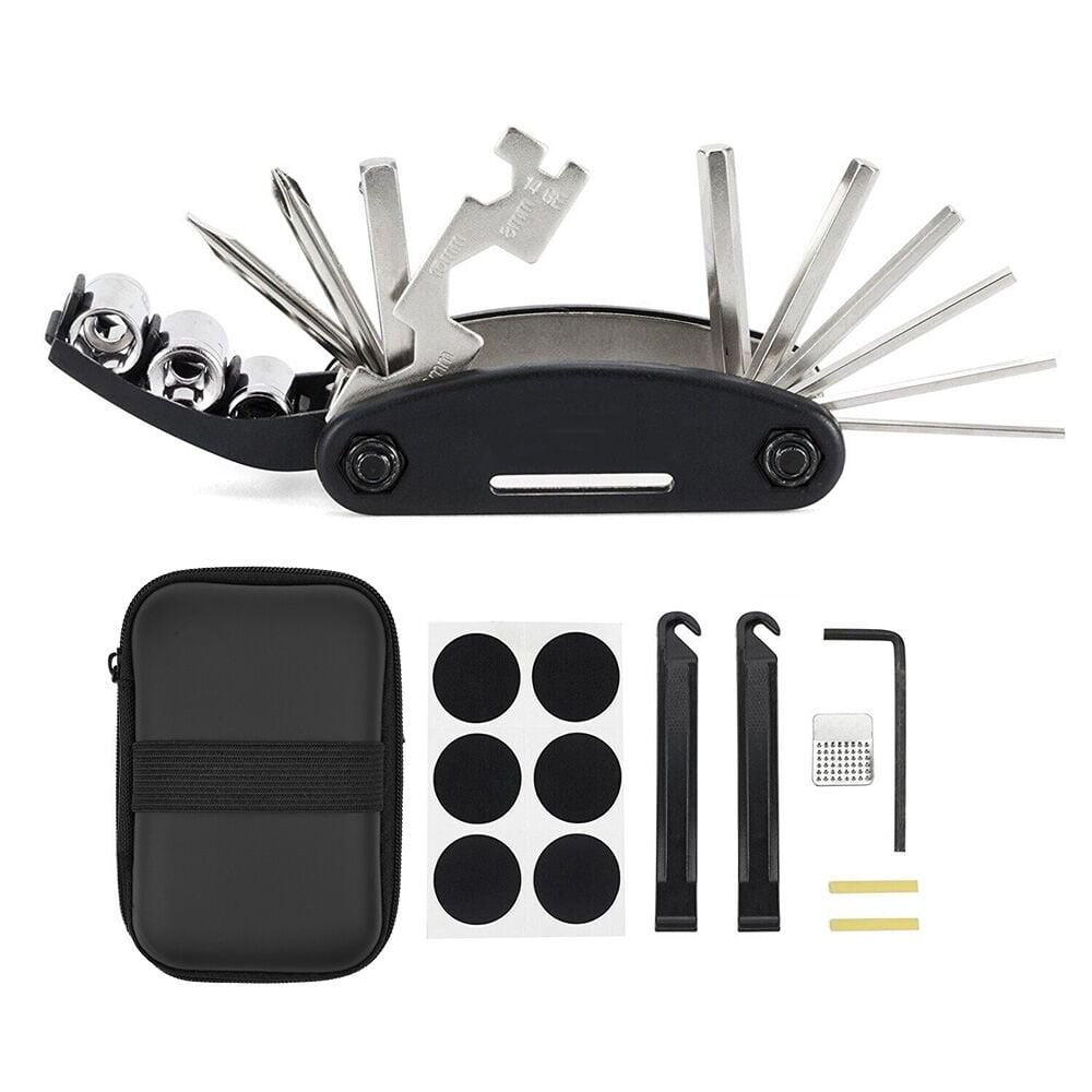 Rongsi Bike Repair Tool Kit Set, Bicycle 16 in 1 Multitool Hex Key Wrench & Bike Tube Patch Kit & Tire Lever, Portable Handy Cycling Maintenance Fix Set for Road Mountain Bikes Why Choose Rongsi repair tool kit?A Great Helper During Riding You would never want to experience waiting for help with a broken bike in the middle of no where. With Rongsi multi-function repair tool kit, save yourself and no worry about hidden troublesAll kinds of repair tool too messy? A hard compact case is convenient and stylish for the multifuction tool set, tire repair patches and pry bars, and other small ride essentials such as money and credit cards.