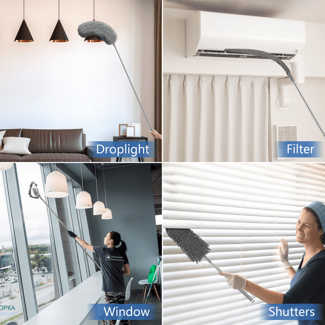 The microfiber dust collector with telescopic rod can be extended by 30-100 inches, and it can clean high dust without using a ladder or stool.