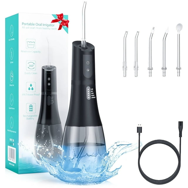 - This cordless water flosser combines powerful water pressure with intelligent design, featuring 5 specialized nozzles and 5 cleaning modes to meet the unique needs of your whole family. The 400ml large water tank ensures longer use without constant refills, giving you a hassle-free experience.
