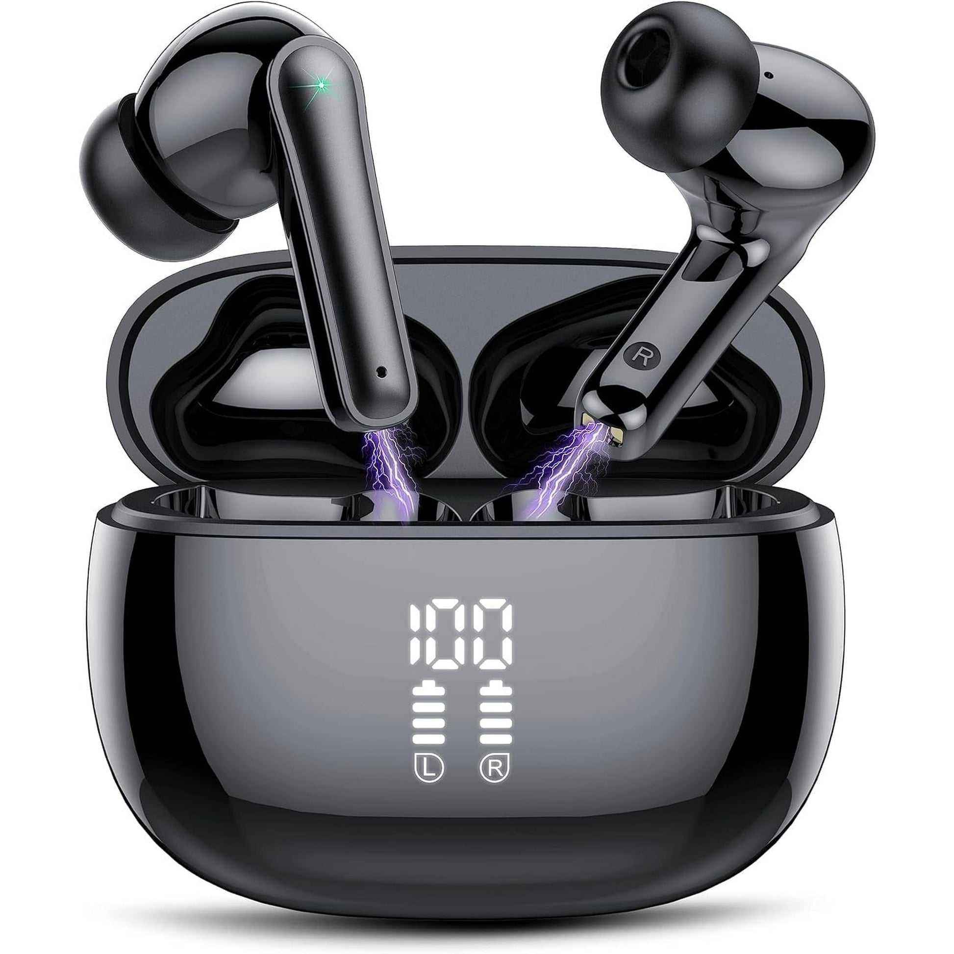 Wireless Ear Buds 48H Playtime Bluetooth Ear Buds Stereo Bluetooth Headphones LED Display IPX7 Waterproof in-Ear Earphones with Mic for TV Smart Phone Laptop Computer Sports